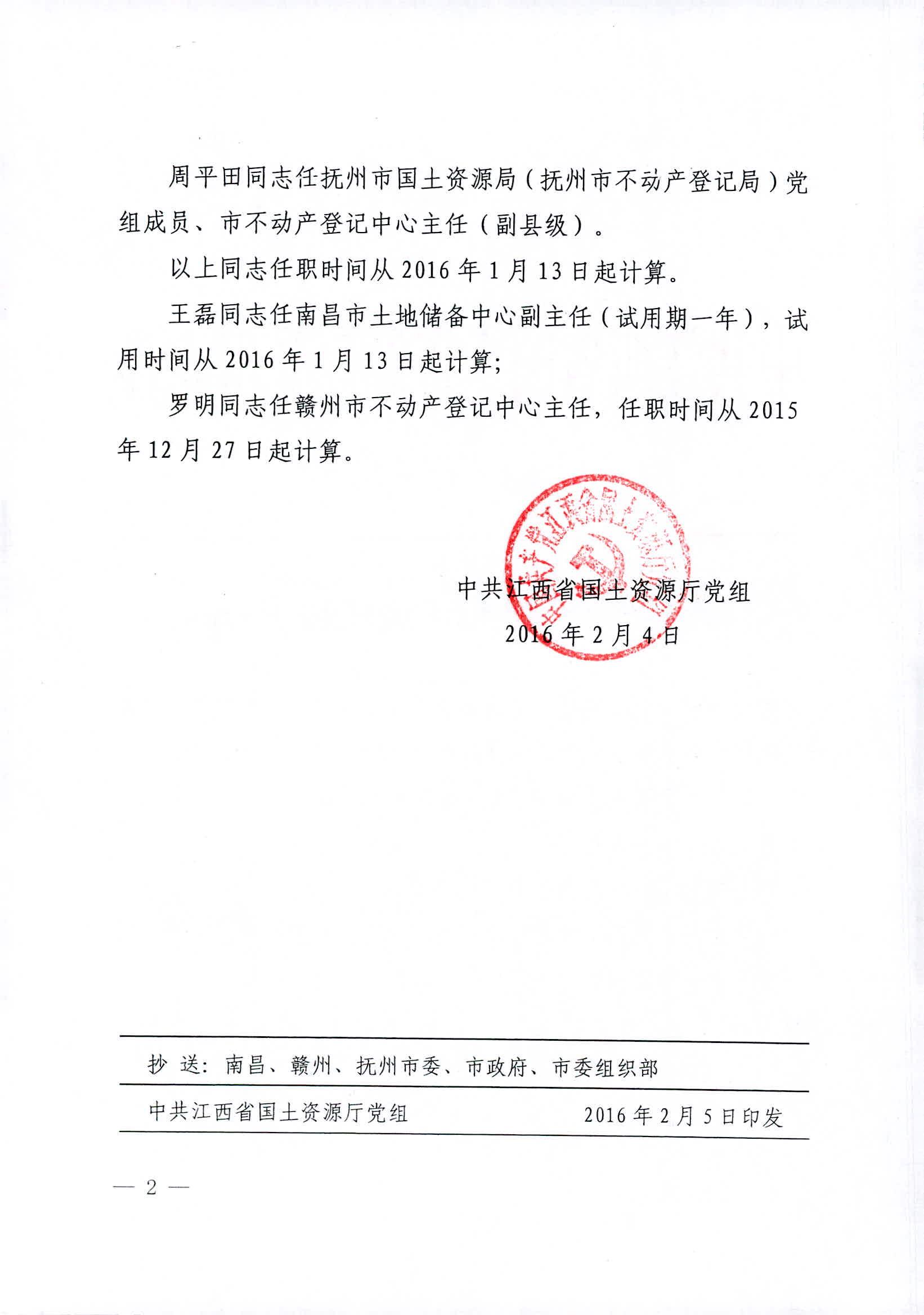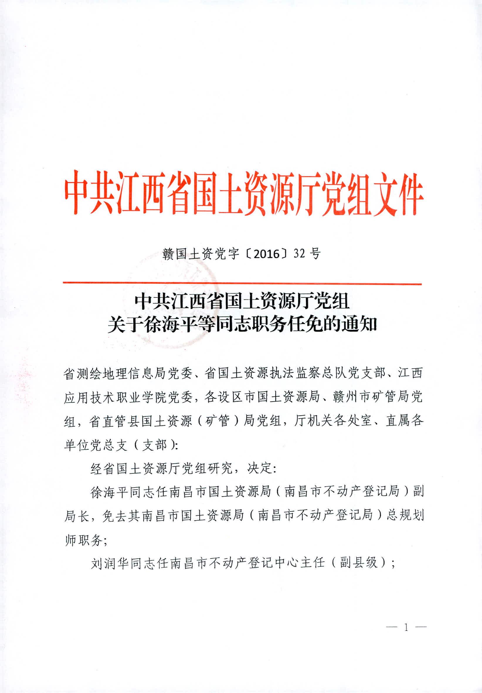 中共江西省国土资源厅党组关于徐海平等同志职务任免的通知