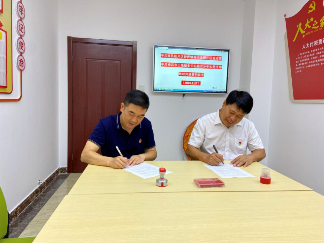 为充分发挥党员在社区建设中的先锋模范作用,推进基层党组织结对共建工作,唱响分中心党支部“五型五心”党建品牌,实现党建与业务工作同频共振。8月27日下午,南昌市土地储备中心经开分中心党支部与南昌经开区南天金源社区党支部开展了结对共建协议签订活动。
