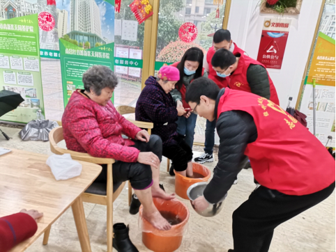 活动中,党员志愿者们分头行动,有的偎依在老人身旁,为老人们耐心讲解智能手机的使用方法;有的与老人们相对而坐,为不识字的他们读报,送上最新的社会动态;有的则端上泡脚养生汤,俯下身为老人们泡脚活络经脉。整个活动现场充满着温暖幸福的氛围,老人们连连表示感谢,感谢党和政府重视养老工作,感谢志愿者们贴心的服务。