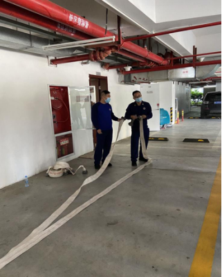 随后,在专业人员的保护下,参训人员两两一组现场演练,从灭火器的“拔、握、瞄、压”到消防带的“抛、接、卷”,参训人员零距离操作消防器材,消防队员也在旁耐心地进行指导。