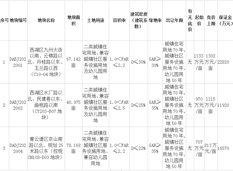 经南昌市人民政府批准,决定以网上拍卖+随机摇号方式出让以下3宗地块的国有建设用地使用权,地块主要情况如下: