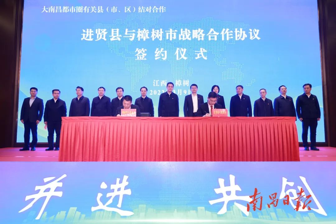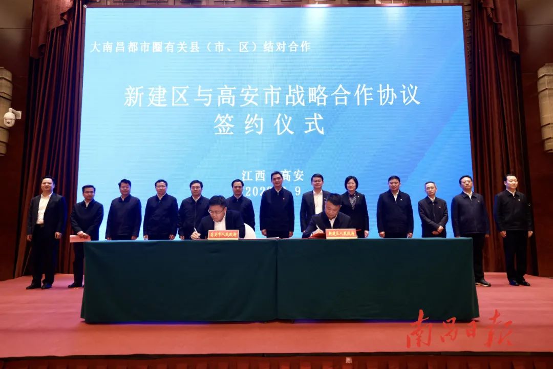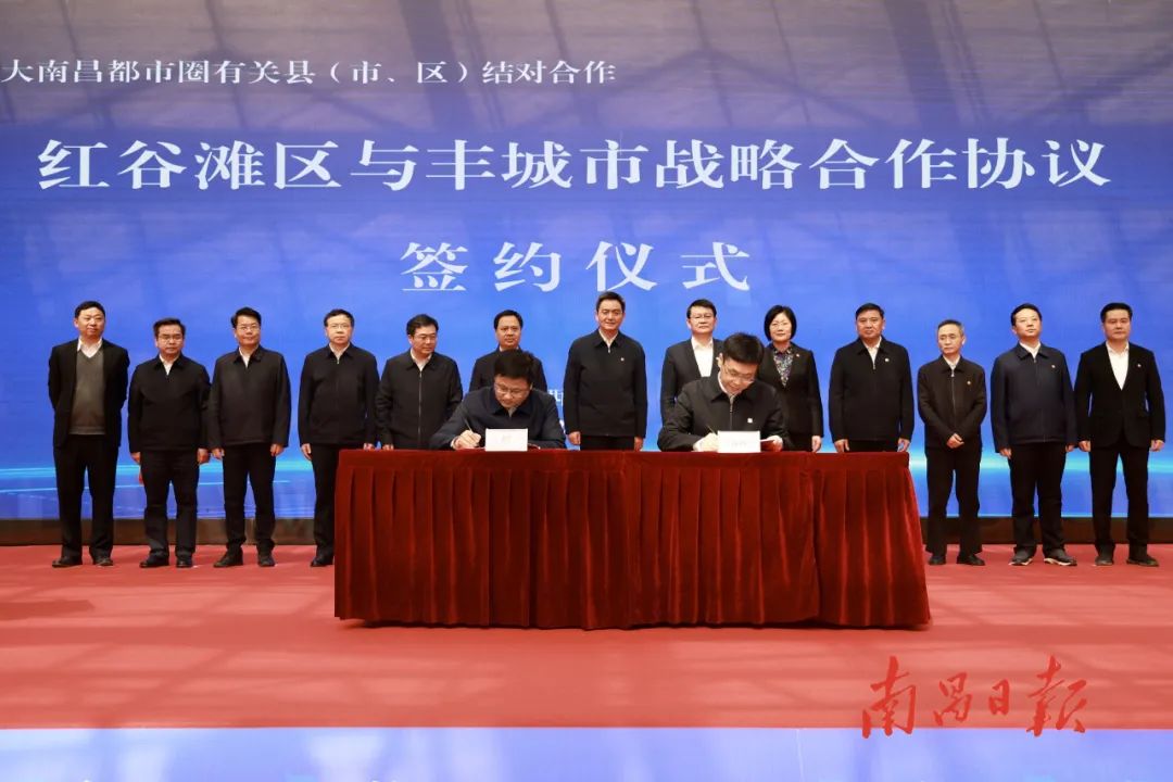 当天,红谷滩区和丰城市、进贤县和樟树市、新建区和高安市分别进行战略合作协议签约,建立健全一体化发展机制,全面开展多领域深度合作。