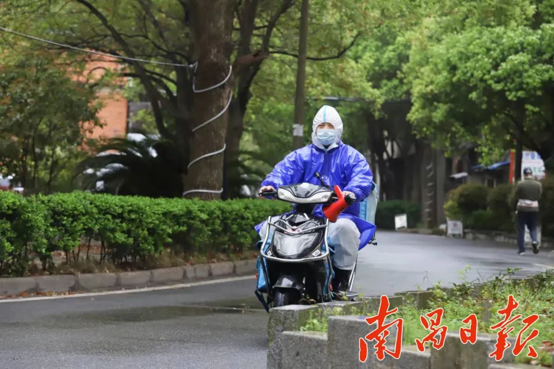 在得知青山湖区招募疫情防控志愿者后,95后外卖小哥熊磊放下手中的工作,主动向社区请缨,报名成为上海路街道的一名防疫志愿者。身为辖区居民,他对辖区情况也比较熟悉,从早上七点半开始,熊磊就骑着他的外卖车在周边挨个楼栋地通知居民去做核酸检测。