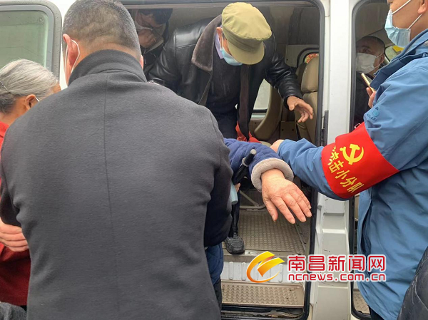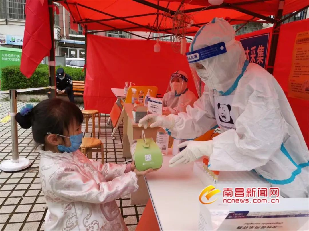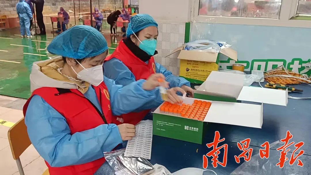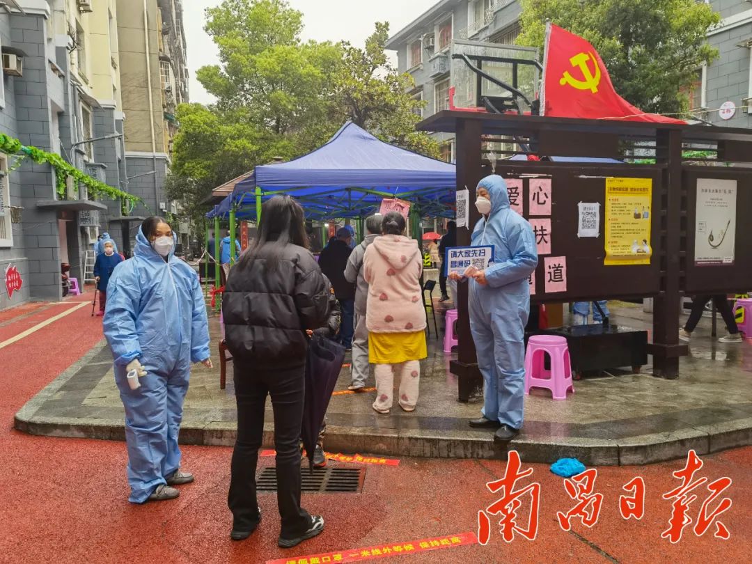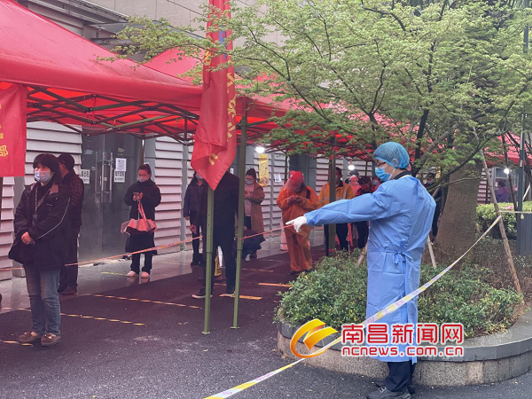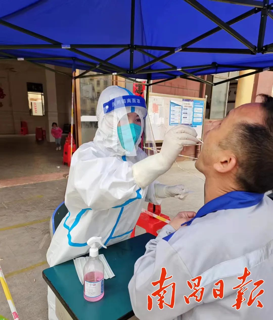 3月21日下午,在豫章街道滨江社区,一群身穿白色防护服的医护人员穿梭在各小区楼栋之间,爬楼入户,为行动不便、年事已高的特殊困难群体开展核酸检测上门服务。只见他们快速取样、动作麻利,尽量减少居民的不适感。