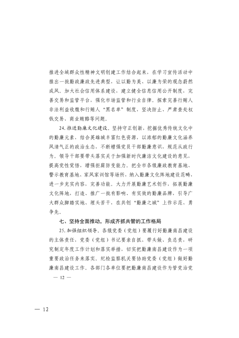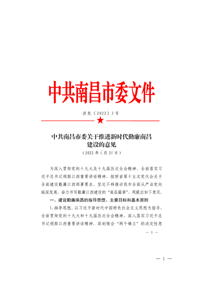 中共南昌市委关于推进新时代勤廉南昌建设的意见