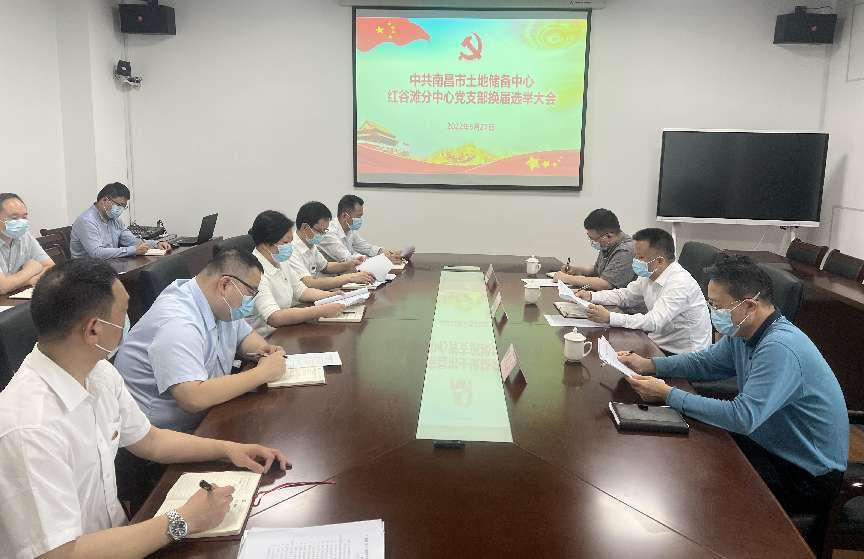 大会在庄严的国歌声中开始,苑成铭同志宣读了中心党委《关于同意中共南昌市土地储备中心红谷滩分中心党支部换届选举的批复》,黄志勇同志代表上一届党支部作了工作报告。会上,全体党员一致通过了换届选举办法、监票人、计票人和唱票人名单,并按照程序顺利完成了投票选举。会议以无记名投票、等额选举方式,选举李琳娜同志为党支部书记。
