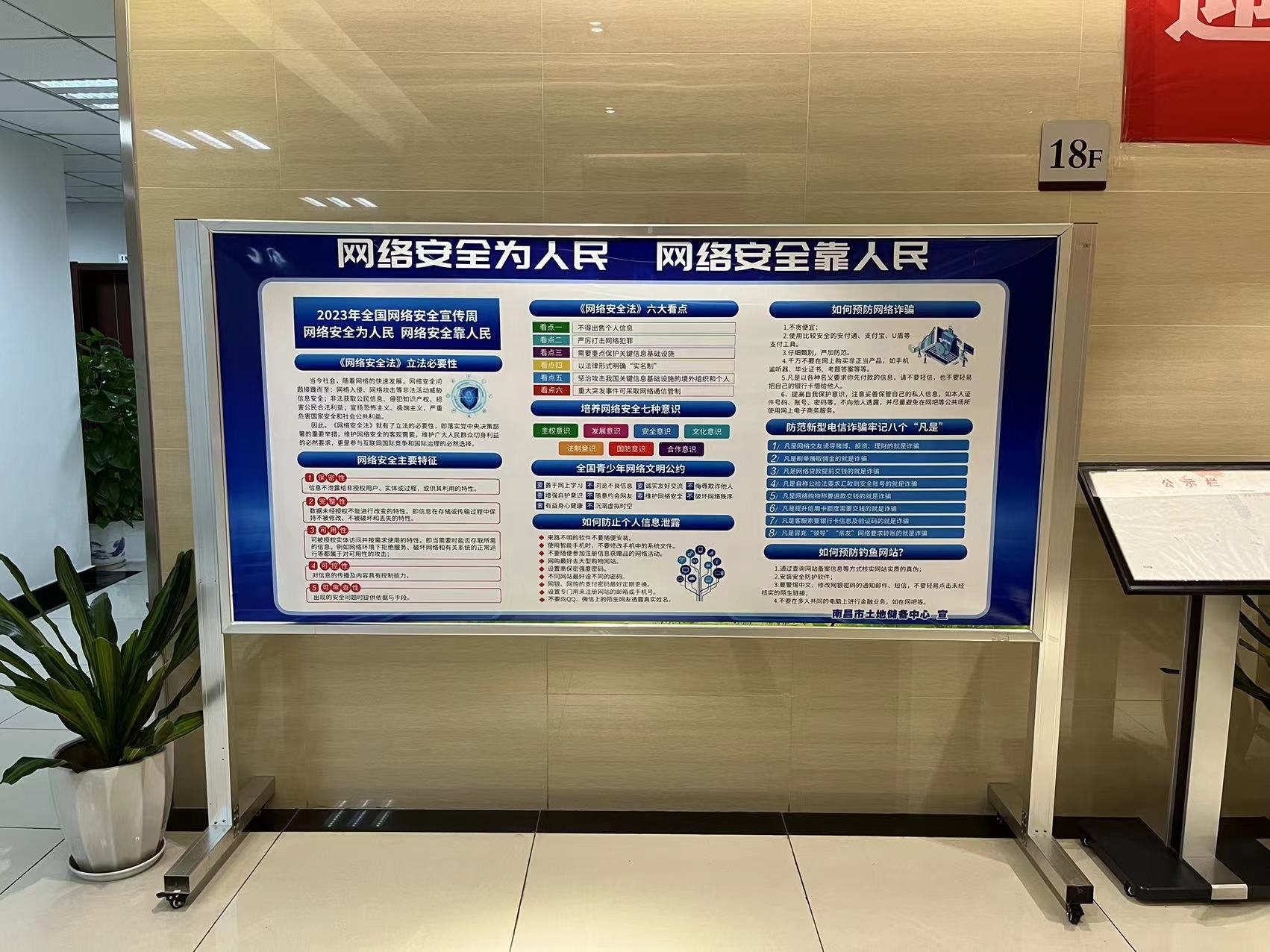 今年9月11日至17日是2023年国家网络安全宣传周。南昌市土地储备中心围绕“网络安全为人民,网络安全靠人民”主题,通过设置宣传展架等多种形式开展系列宣传活动。一是摆放办公楼电梯口宣传展架上,内容生动形象地宣传展示了国家网络安全宣传周的基本概况、网络安全领域基础知识、个人信息保护注意事项等,推动干部职工深入了解把握网络安全的重要性、必要性和紧迫性,不断提升中心干部职工网络安全意识和技能;二是通过中心门户网站、微信公众号平台发布网络安全及相关知识,激发中心全体干部职工学习网络安全知识的兴趣;三是科室组织网络安全专题学习会,深入学习领会习近平总书记关于网络强国的重要思想,不断提高网络安全知识理论水平;四是中心网信办认真排查可能存在的网络安全隐患。对所有办公电脑进行检查,确保办公终端均设置了强密码并能自动锁屏,浏览器关闭保存账号密码功能,保障办公终端的安全运行。