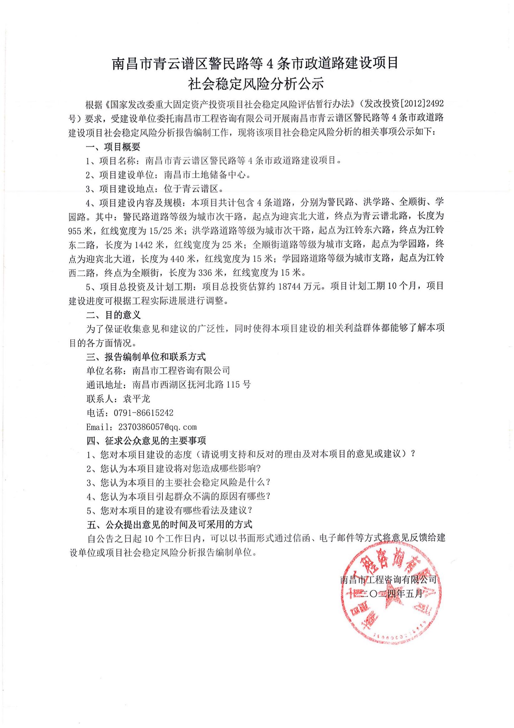 青云谱区警民路等4条市政道路项目社会稳定风险分析公示