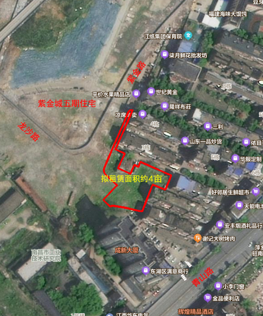1、拟临时利用土地范围和面积:东湖区龙沙路以北、紫金城五期项目以南,面积约4亩(具体以实际测量为准,详见附图)。