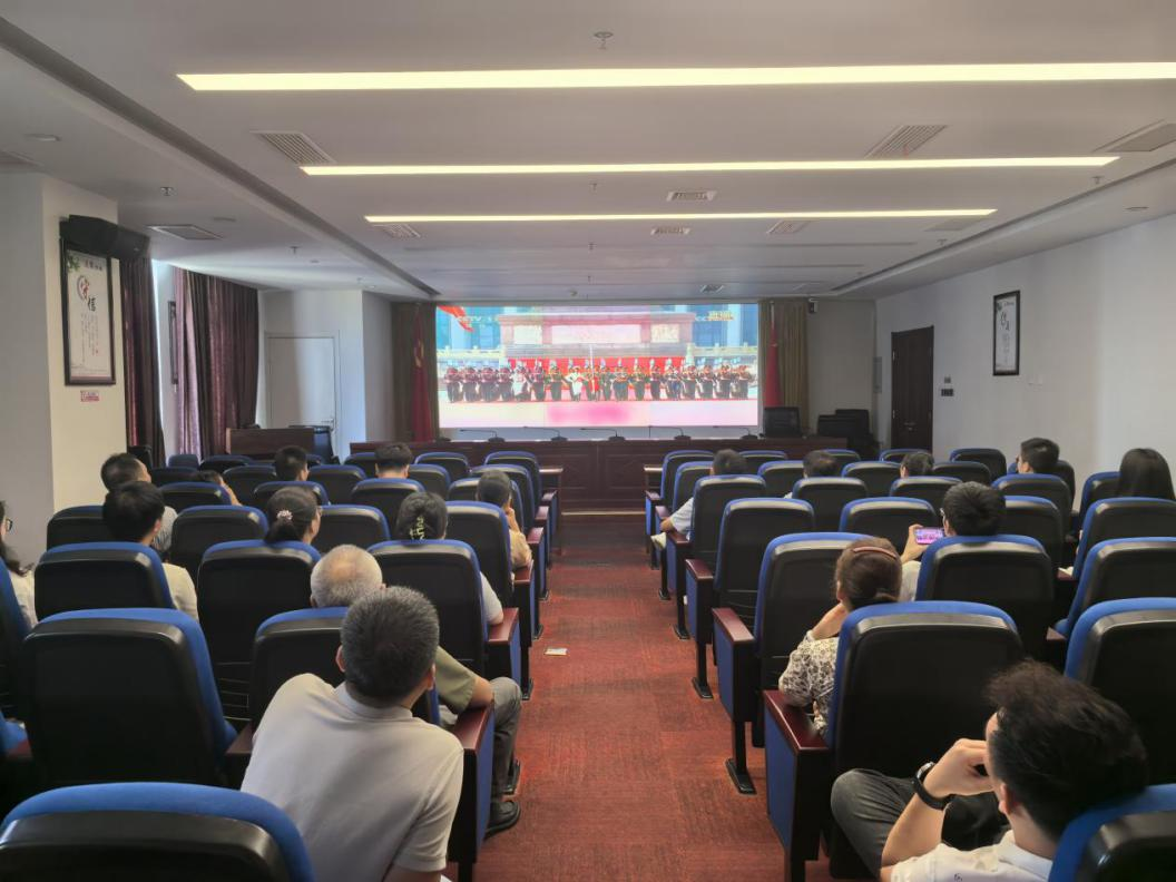 9月3日上午,纪念中国人民抗日战争暨世界反法西斯战争胜利80周年大会在北京天安门广场隆重举行。为进一步增强党员干部的爱国主义情怀和集体荣誉感,中心组织全体干部职工集中收听收看电视直播。