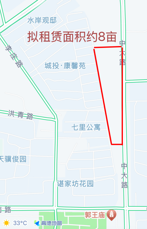 拟临时利用土地范围和面积:东湖区中大南路以西地块,约8亩。(具体以实际测量为准,详见附图)。