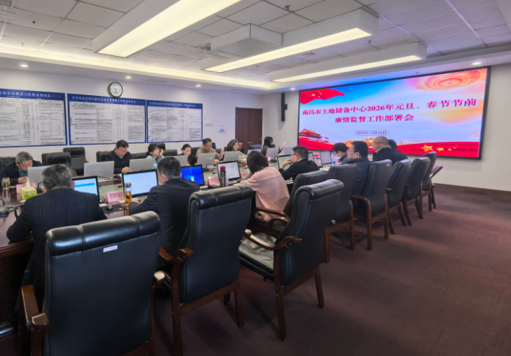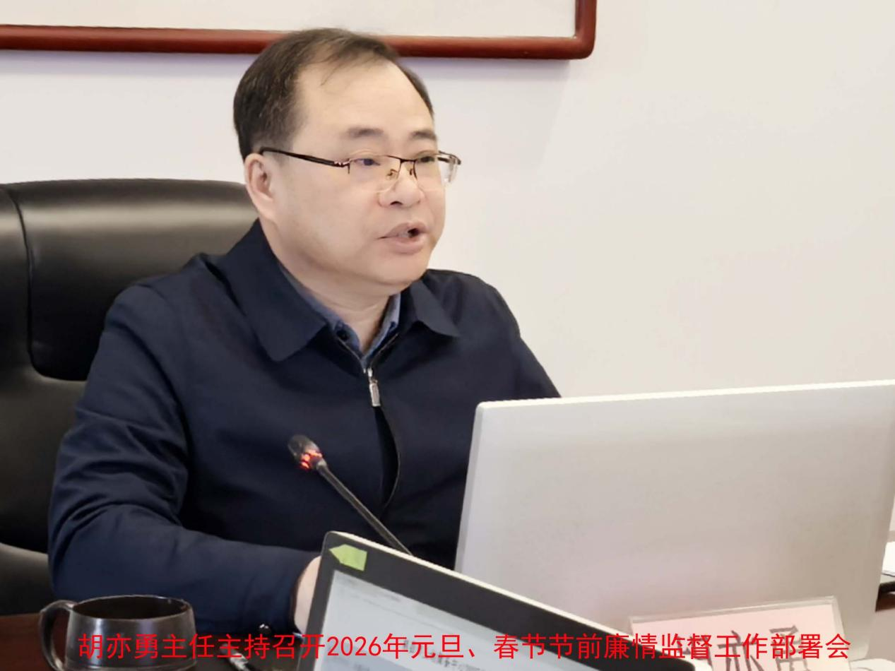 12月25日上午,市土地储备中心党委书记、主任胡亦勇主持召开2026年元旦、春节节前廉情监督工作部署会并讲话,中心领导班子成员出席。