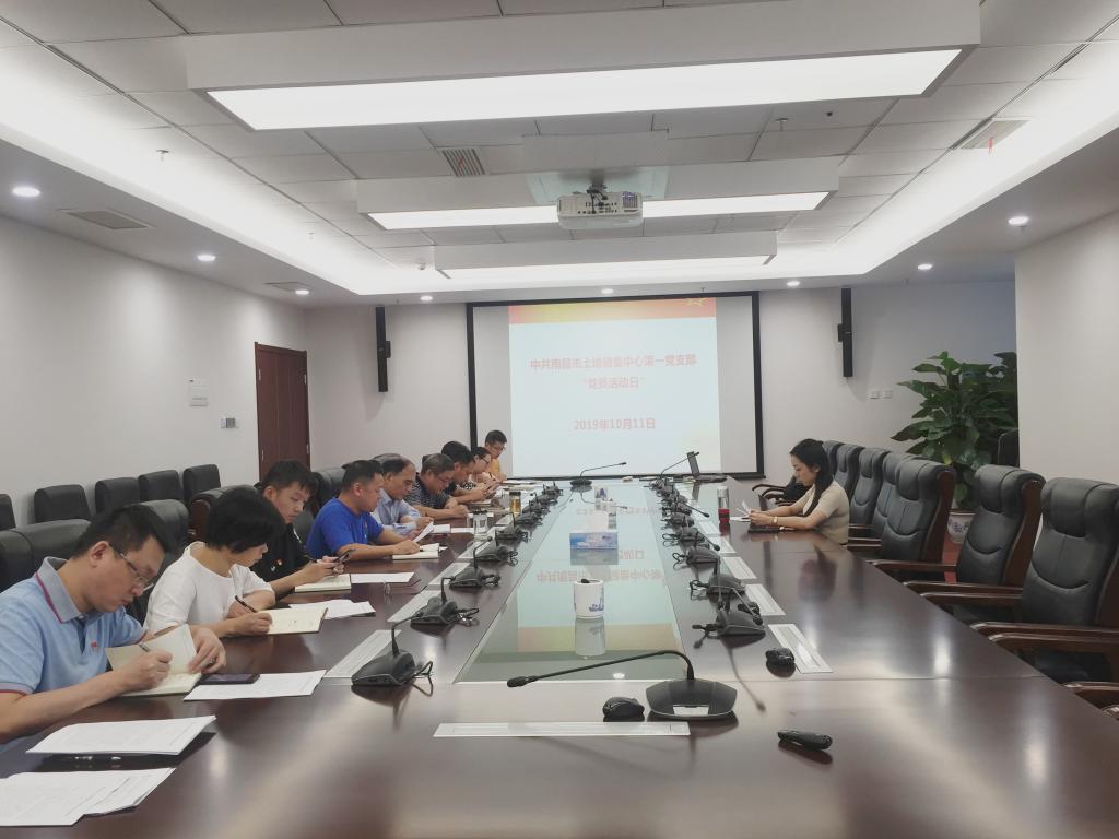 2019年10月11日上午,中共南昌市土地储备中心第一党支部组织开展2019年10月“党员活动日”活动,会议由第一党支部书记周薇同志主持,中心党委书记、主任黄国农同志,中心党委委员、副主任王磊同志以普通党员身份参加了会议。