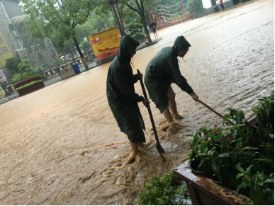 突如其来的大雨打破了宁静的夜,7月7日一夜的狂风暴雨直至9日下午仍未停歇,时间之久,雨量之大,顷刻间湾里成了一片汪洋。诸多街道路段积水成河,开车如划船,市土储湾里分中心庭院内积水没膝,食堂瞬间被淹,办公楼也岌岌可危。受这样极端恶劣天气的影响,市土储湾里分中心处于危急之中。