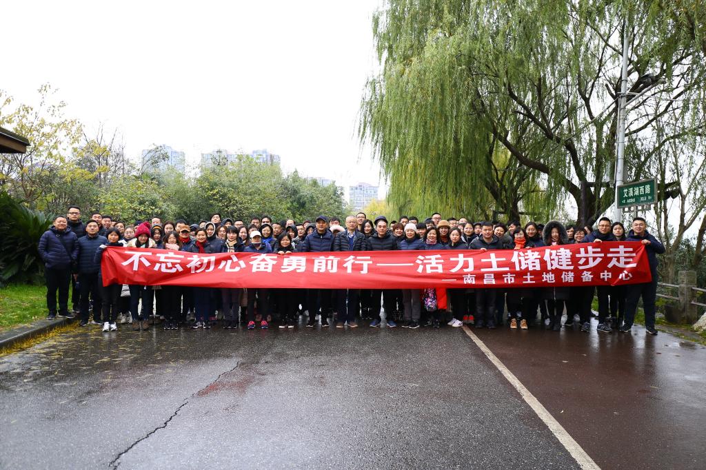 为了丰富中心文化生活,强健职工体魄,增强单位凝聚力,2018年12月28日,南昌市土地储备中心在艾溪湖湿地公园开展“不忘初心奋勇前行――活力土储健步走”活动,随着出发令响,统一穿着的参赛者宛如一波波蓝色浪潮从格兰云天大酒店出发,途经艾溪湖北路停车场,最后返回江铜国际广场慢行跑道,全长9公里。