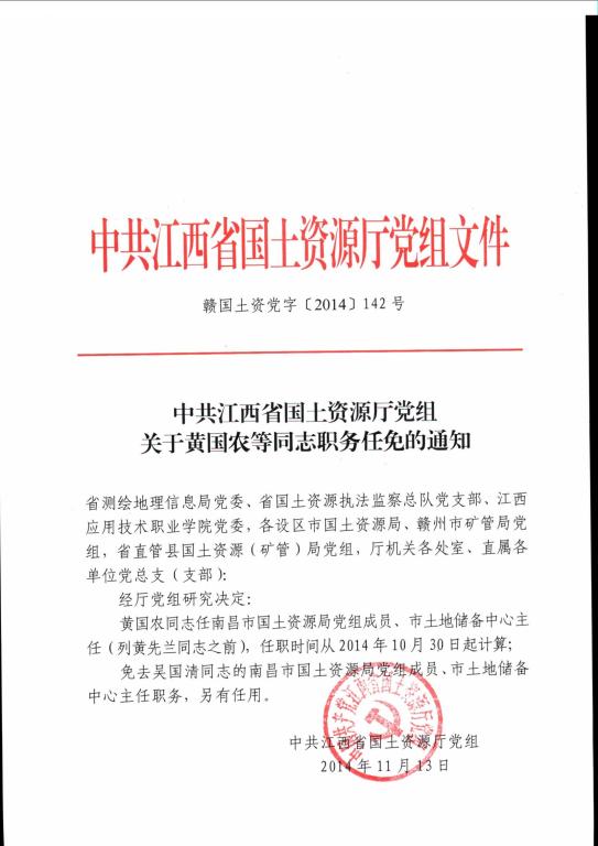 关于黄国农等同志任免的通知