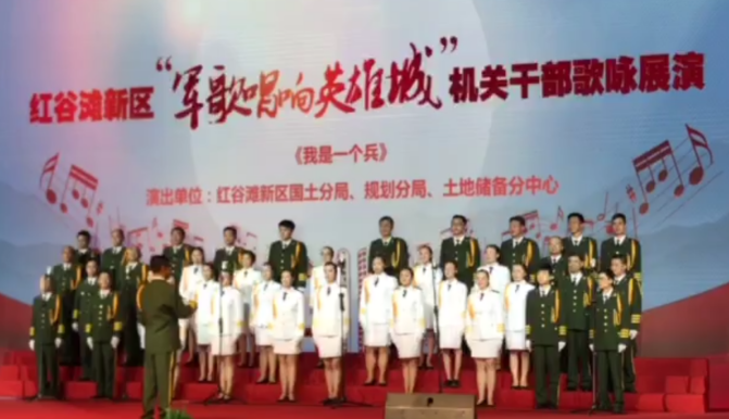 7月26日傍晚七点,由中共红谷滩新区工作委员会、红谷滩新区管理委员会主办的“军歌唱响英雄城”机关干部歌咏展演活动在国展中心多功能厅举行。红谷滩分中心携手国土分局、规划分局三十余名机关干部合唱了歌曲《我是一个兵》,用嘹亮的军歌,唱响敢为人先的“八一精神”,用动人的礼赞,传扬生生不息的红色基因。