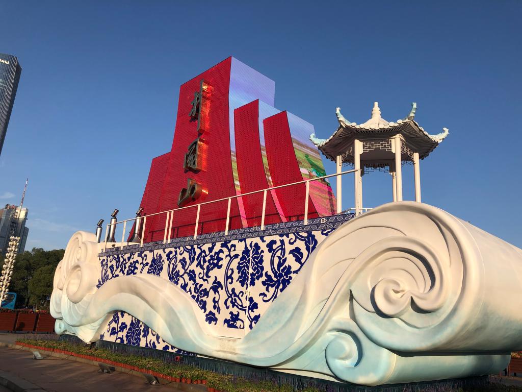 据悉,江西彩车以“金色赣鄱”为主题,车体以如意为整体造型,镶有景德镇青花吉祥纹样,彩车上还有井冈山造型的超大立体异形LED显示屏和醒目的VR两个字母,车尾放置了牡丹亭模型。彩车凝聚了江西让人骄傲的元素,也展示了江西人民的美丽风采。